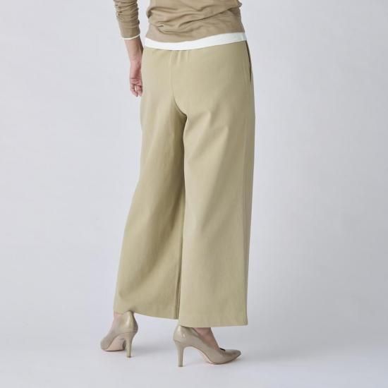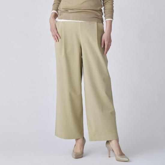 股下65cmのフルレングス仕様で、パンプスやスニーカーなど幅広いシューズと好相性。ウエストは総ゴムでリラックス感がありつつ、きちんと感のあるデザインなので、オフィスから休日スタイルまで幅広く着用可能。一本で着こなしに大人の余裕をプラスするパンツです。